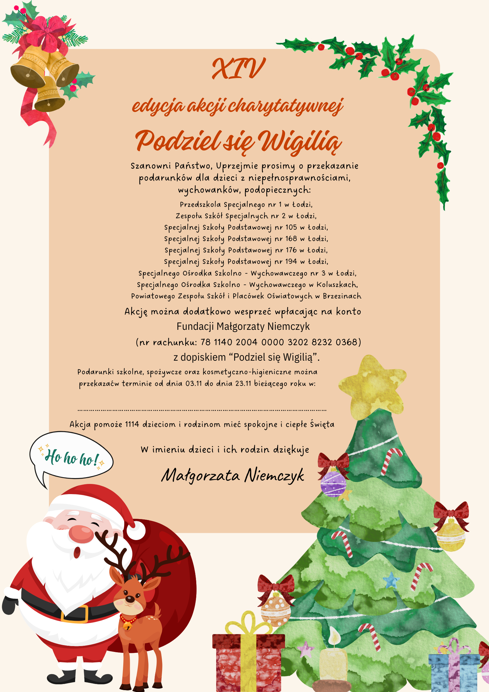 Zapraszamy do wzięcia udziału w akcji charytatywnej "Podziel się Wigilią" Fundacji Małgorzaty Niemczyk.